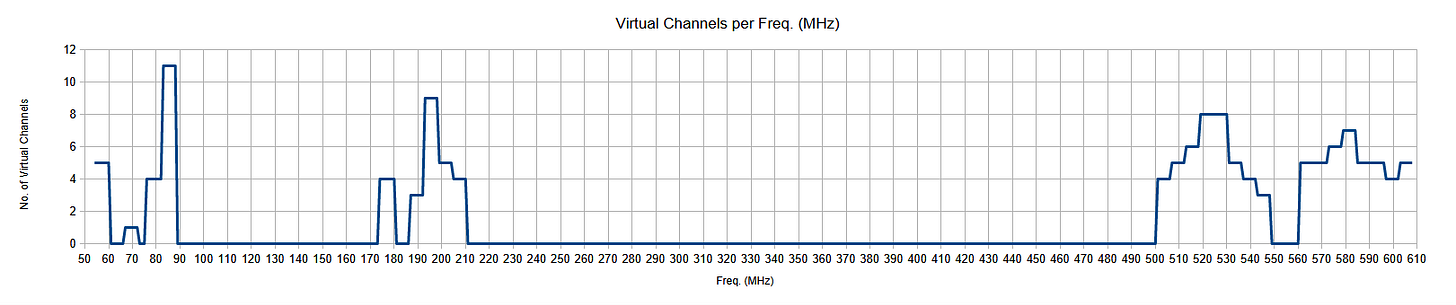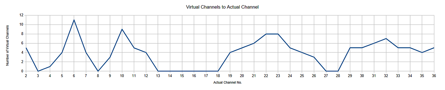 And it produces graphs of 1) virtual channels per actual channel and 2) virtual channels per frequency.