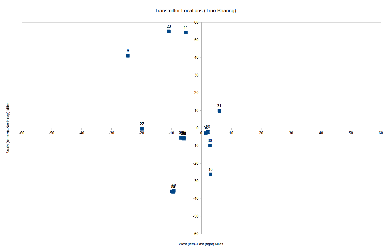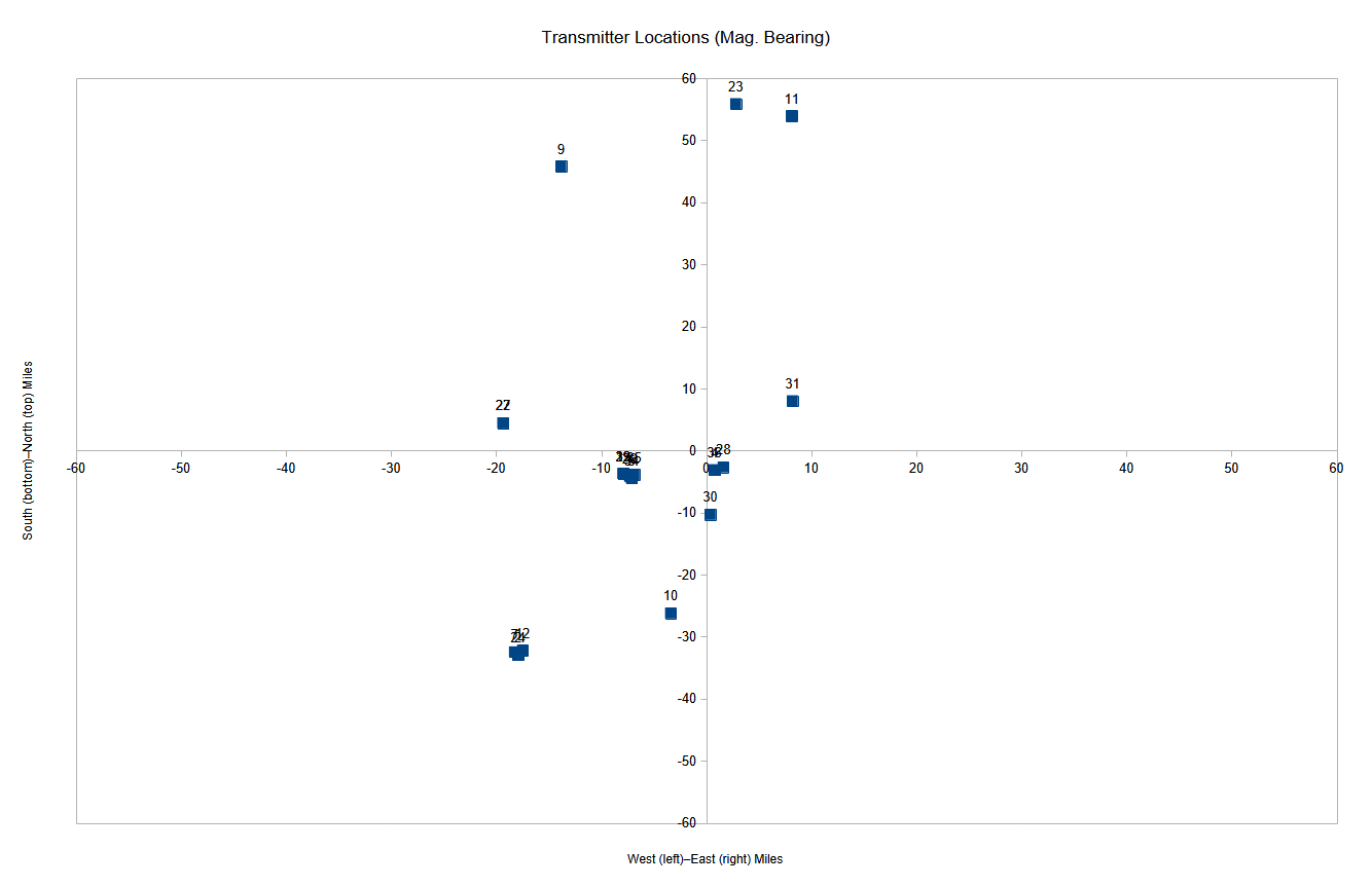 For each transmitter in the worksheet, place its Latitude and Longitude (columns M and N) into the online tool for Radio 2 and click “Plot GPS.”